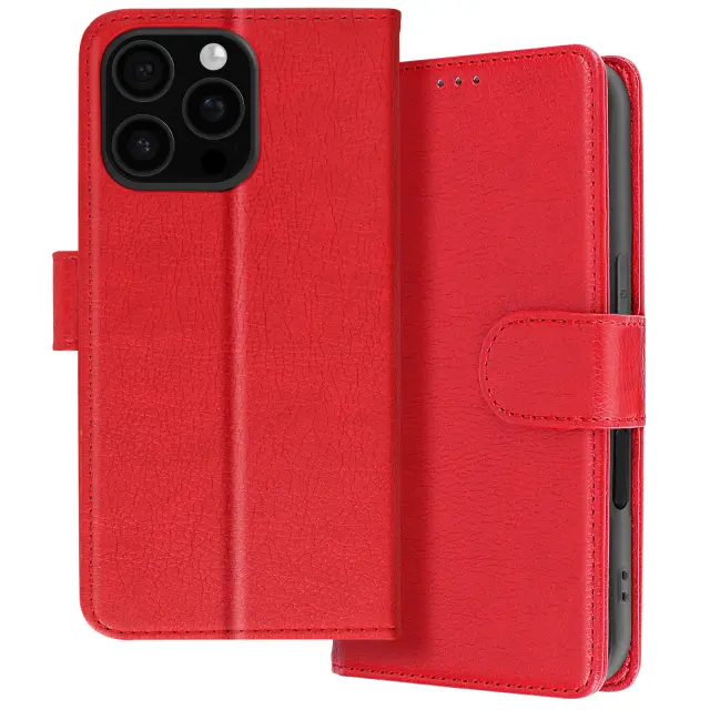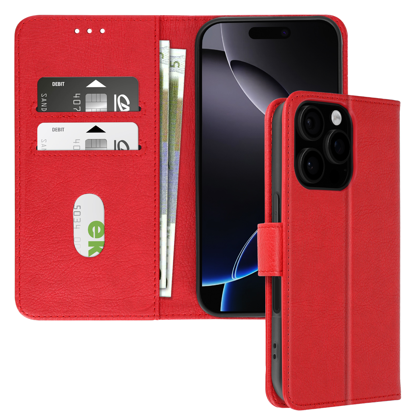 Ohišje za iPhone 16 Pro Clapet Denarnica in držalo za videoposnetek, Rdeča