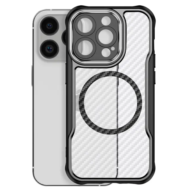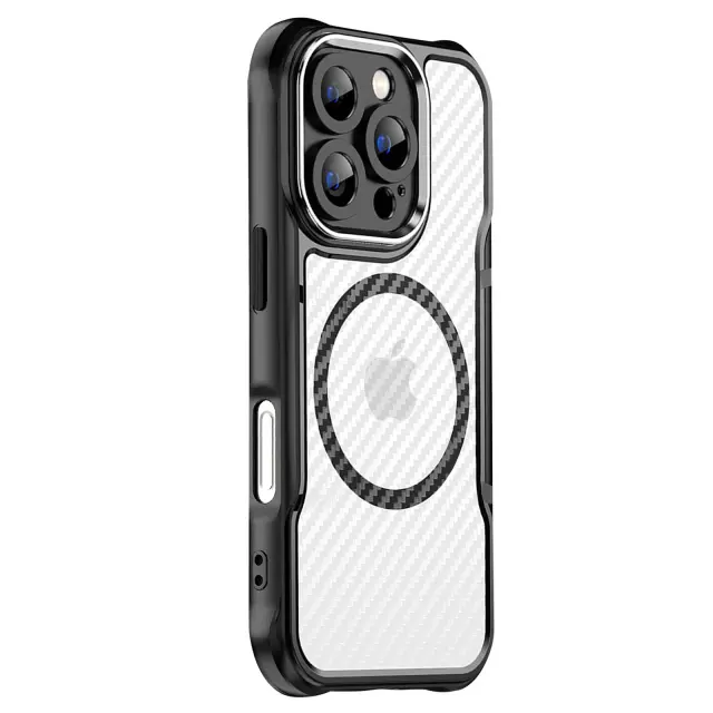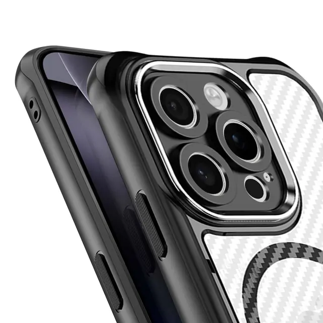 Ohišje za iPhone 16 Pro MagSafe Carbon Back Odporen na udarce Okrepljeno, Črna