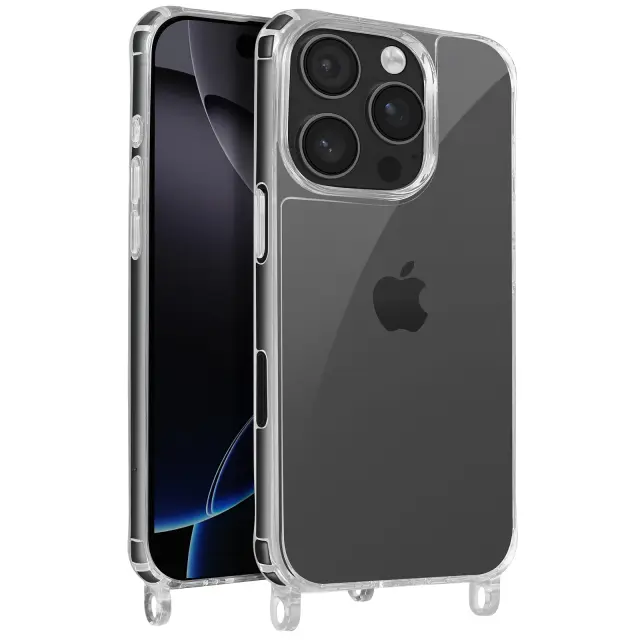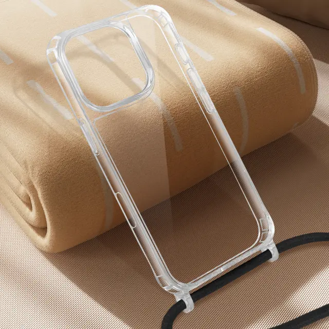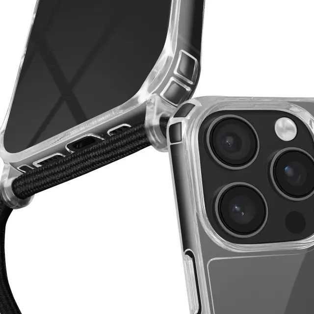 Ohišje za iPhone 16 Pro Max Silikonsko odporno na udarce s pleteno vrvjo, Prozorno