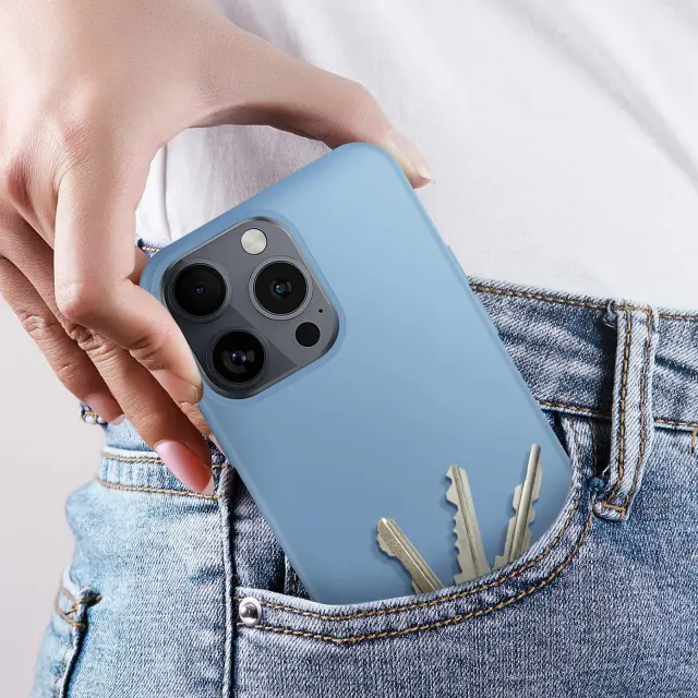 Ohišje za iPhone 16 Pro Poltrdno Soft-touch proti praskam, Svetlo modra