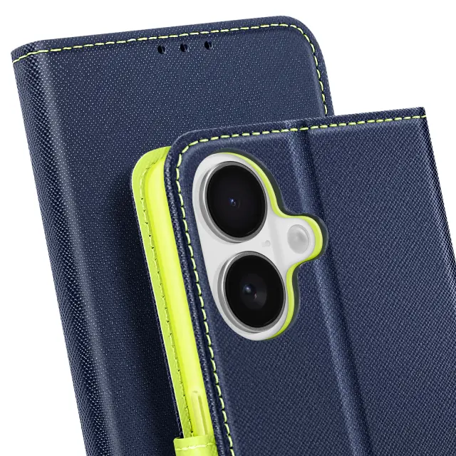 Ohišje za iPhone 16 Wallet Leather Saffiano Fancy, Modra noč