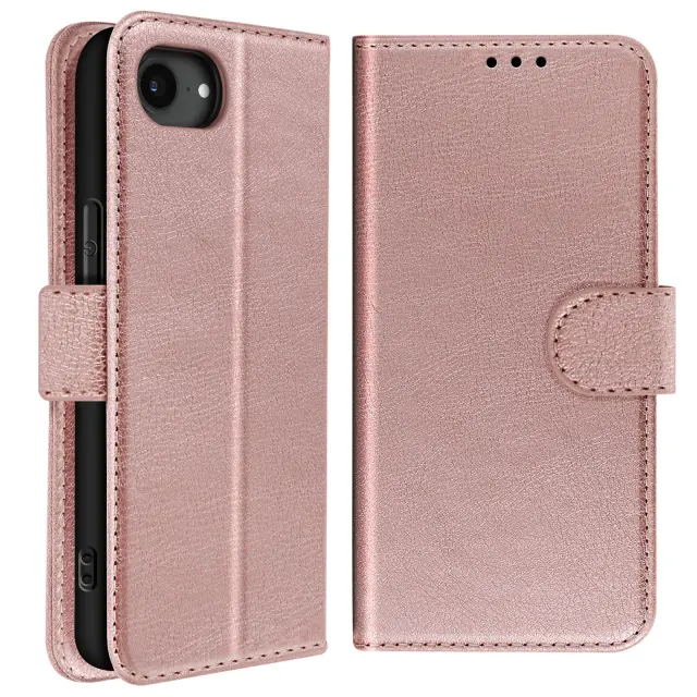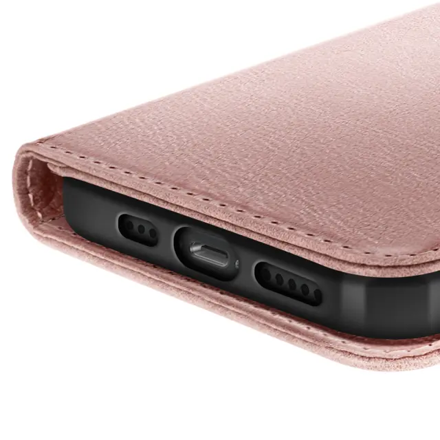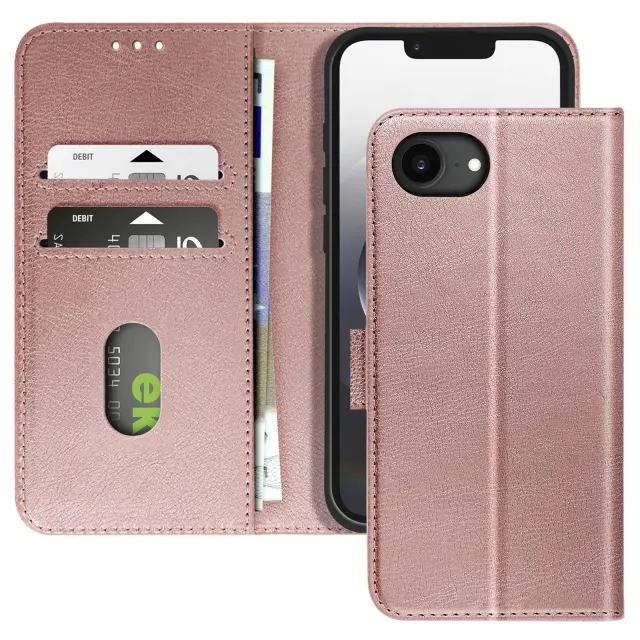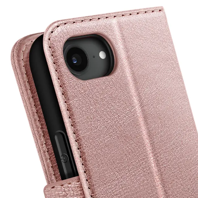 Ohišje za iPhone 16e Clapet Wallet in držalo za videoposnetke, Šampanjec roza