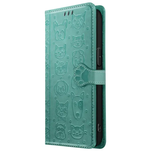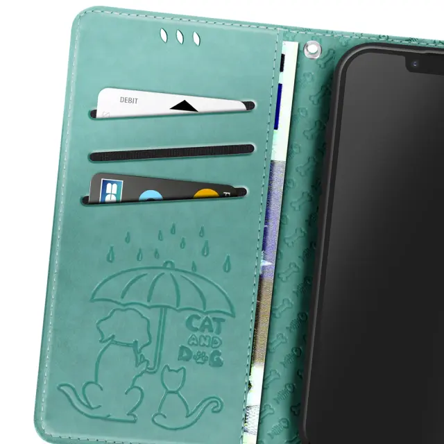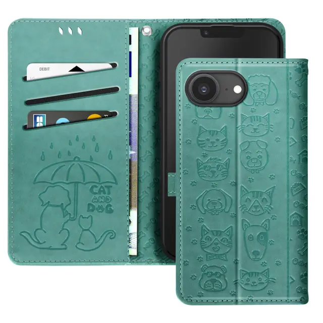 Ohišje za iPhone 16e Design Cat and Dog Wallet Clap, Zelena