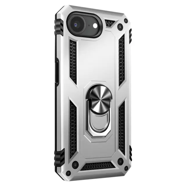 Ohišje za iPhone 16e Hybride Magnetic Support Ring, Srebrna