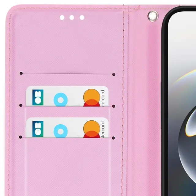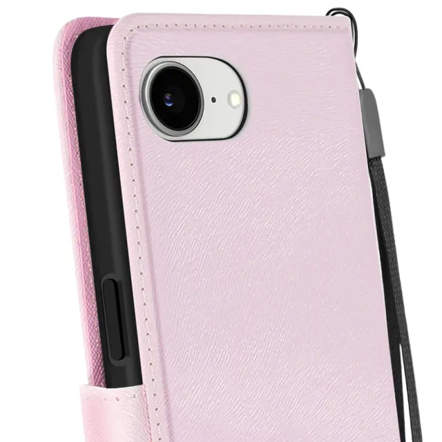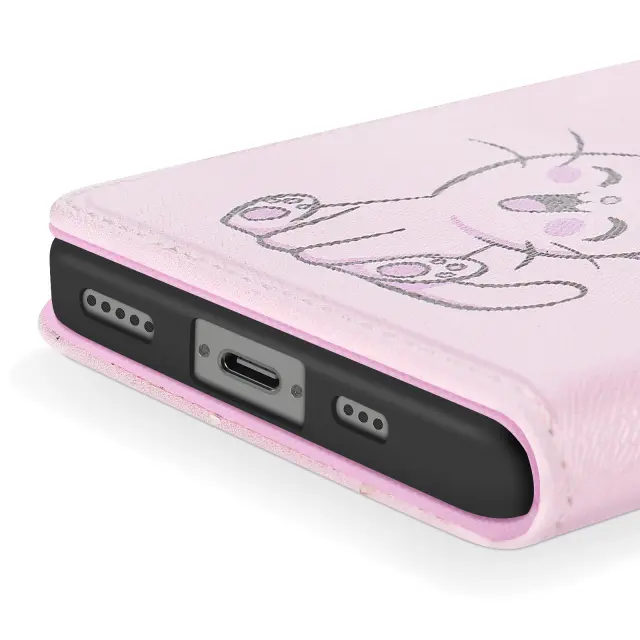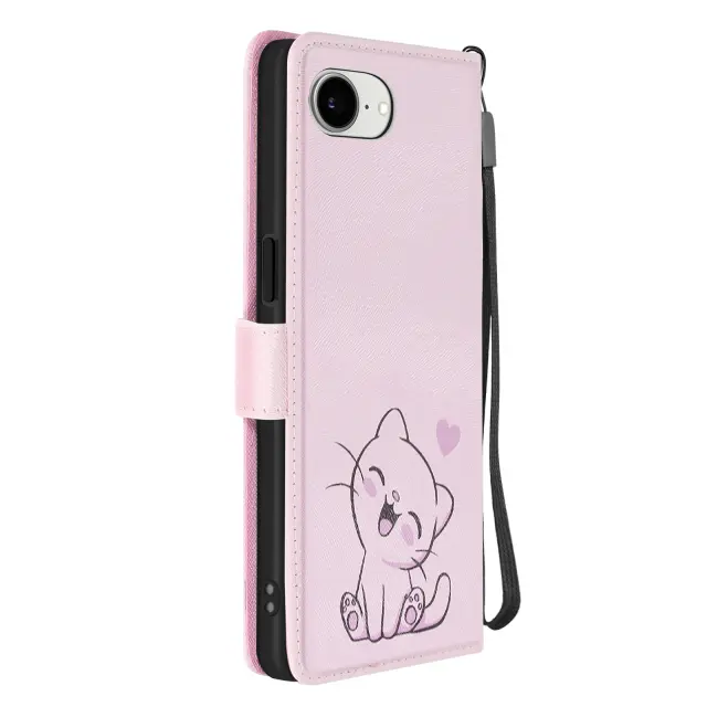 Ohišje za iPhone 16e Kawaii Kitten s trakom in držalom za kartice, Rose clair