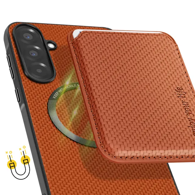 Ohišje za magnetno ohišje za kartice Samsung A36 iz ogljikovih vlaken, Svetlo rjava