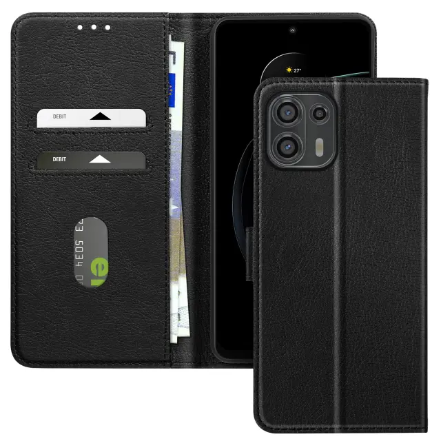 Ohišje za Motorola Edge 20 Lite Clamshell denarnica in držalo za videoposnetke, Črna