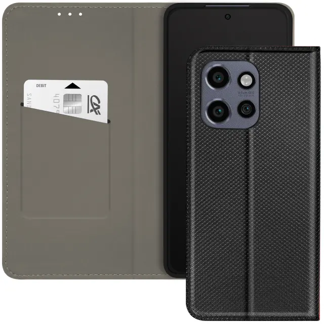 Ohišje za Motorola Edge 50 Neo Clamshell držalo za kartice in videoposnetke, Črna