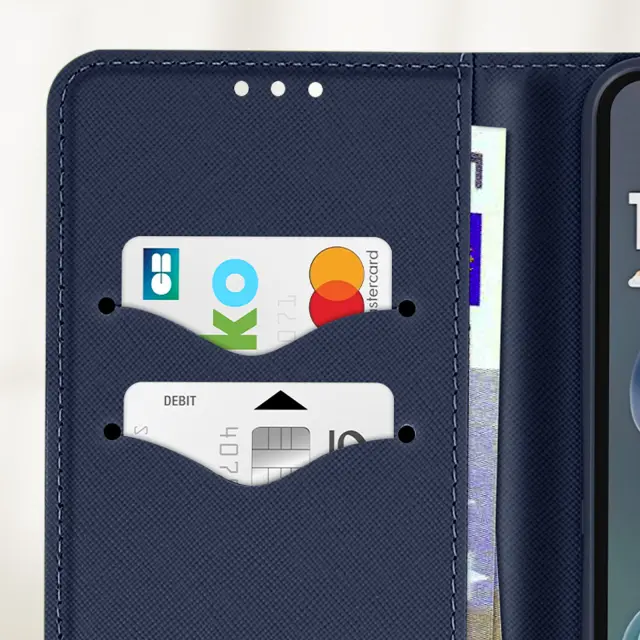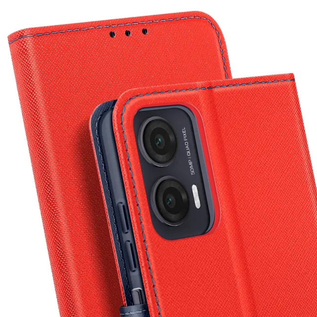 Ohišje za Motorola Moto G35 Wallet Leather Saffiano Fancy, Modro / Rdeče