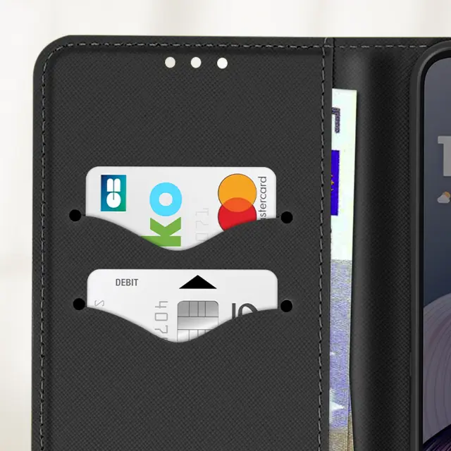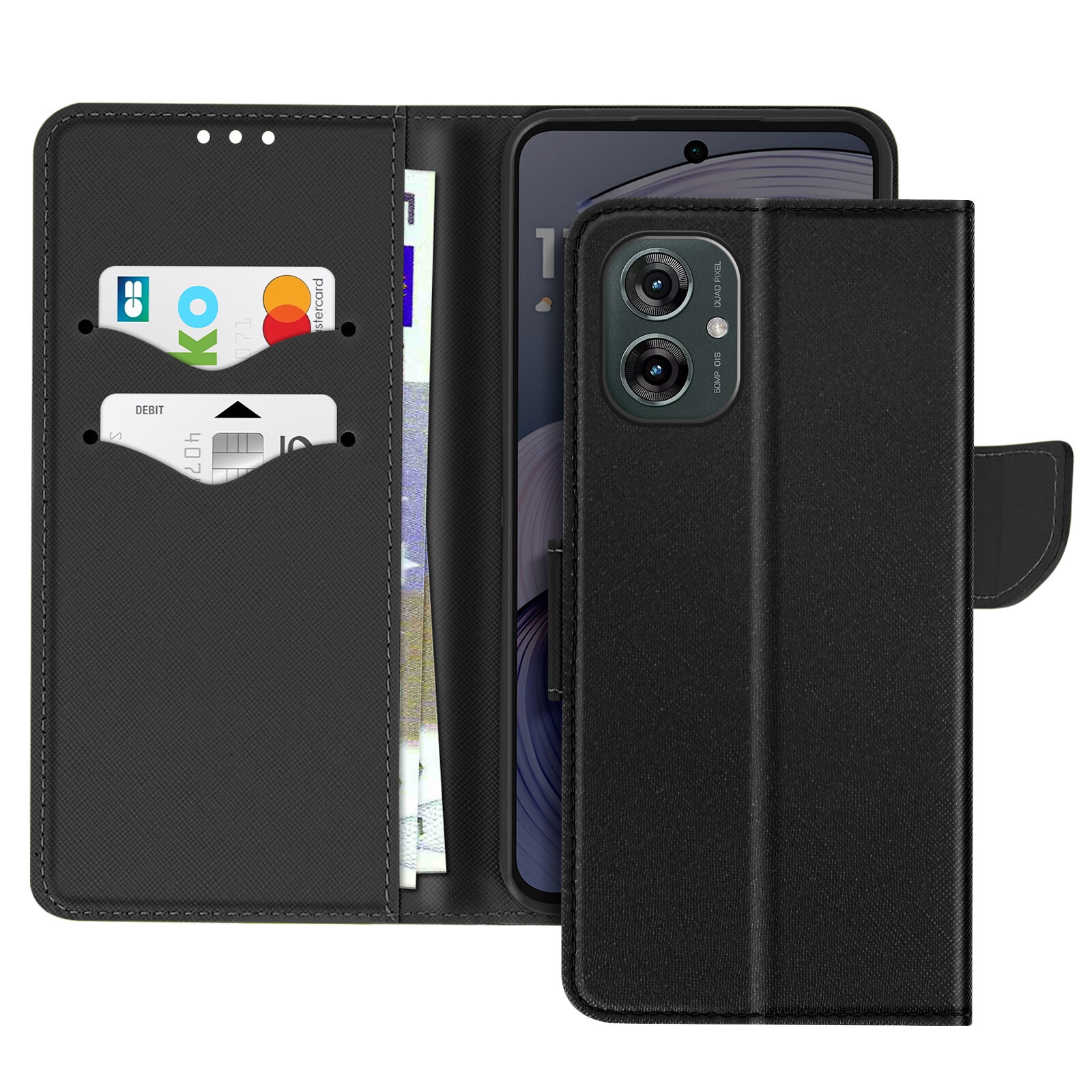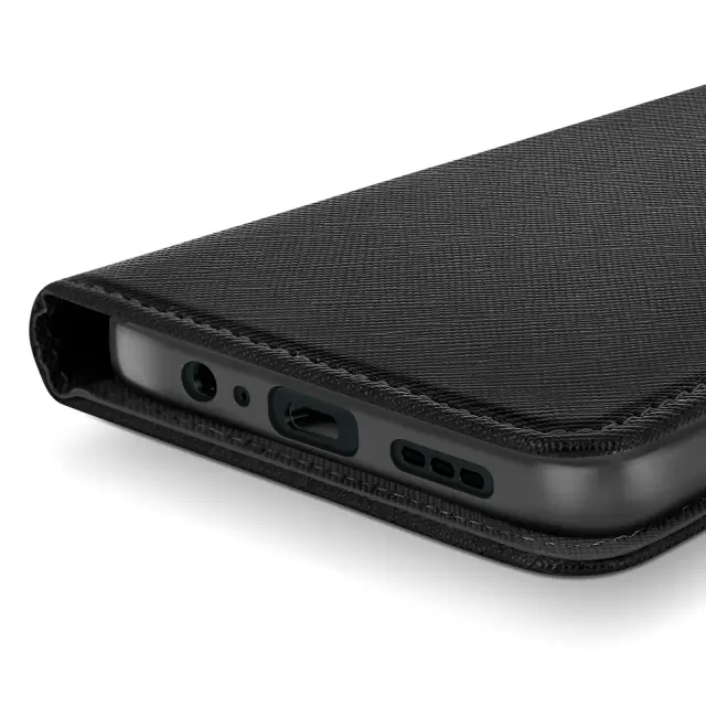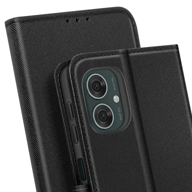 Ohišje za Motorola Moto G55 Denarnica Usnje Saffiano Fancy, Črna