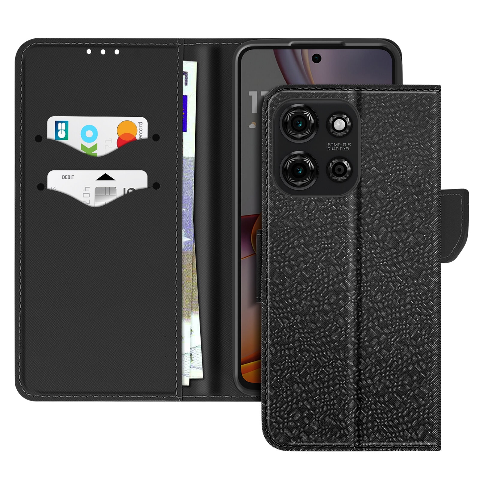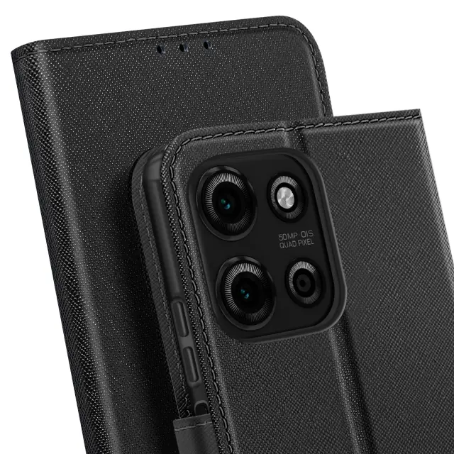 Ohišje za Motorola Moto G75 Wallet Saffiano Leather Fancy, Črna