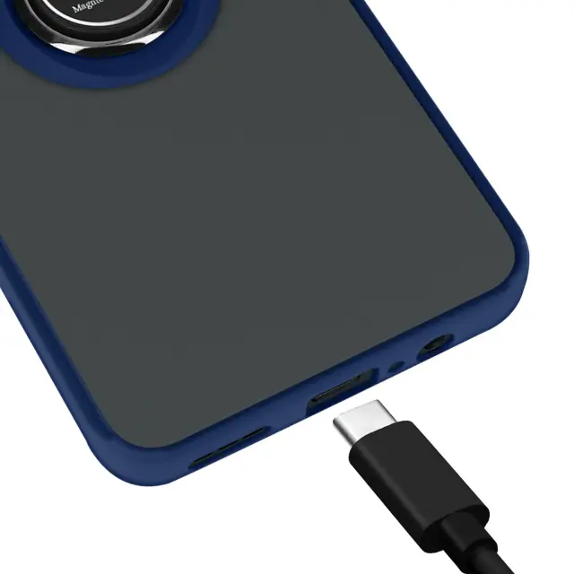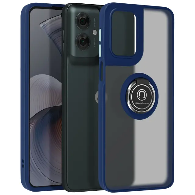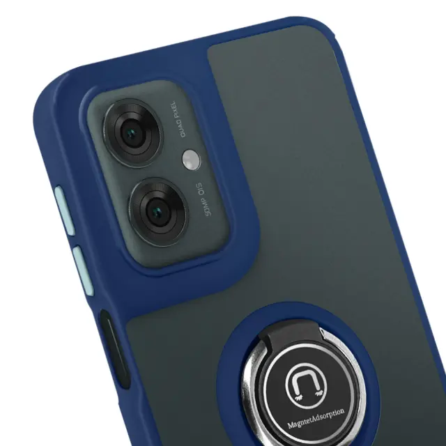 Ohišje za Motorolo Moto G55 Metal Ring Video Support, Modra noč