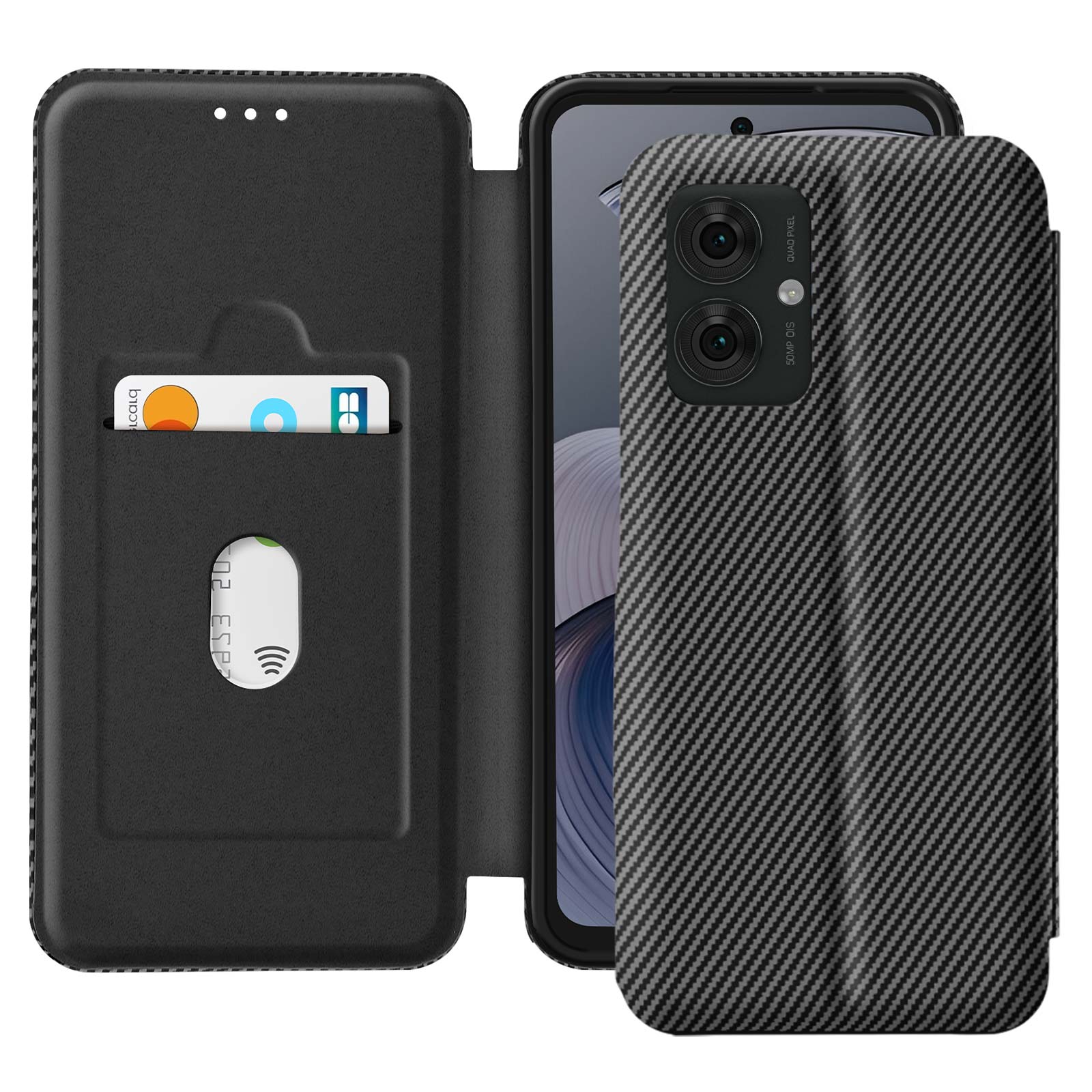 Ohišje za Motorolo Moto G55 Ohišje za videokamero iz ogljikovih vlaken in zaščita pred RFID, Črna