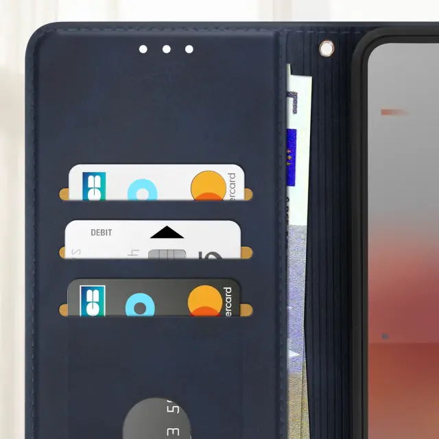 Polnočno modro ohišje, posebej zasnovano za vsakodnevno zaščito in okrasitev telefona Nothing Phone 3a Pro. Predelki za shranjevanje kartic in stranski žep za bankovce. Klop se zlahka spremeni v stojalo, tako da lahko vsebino spremljate v udobju.. Magnetni zavihek za zapiranje zavihka in preprečevanje nenamernega odpiranja.