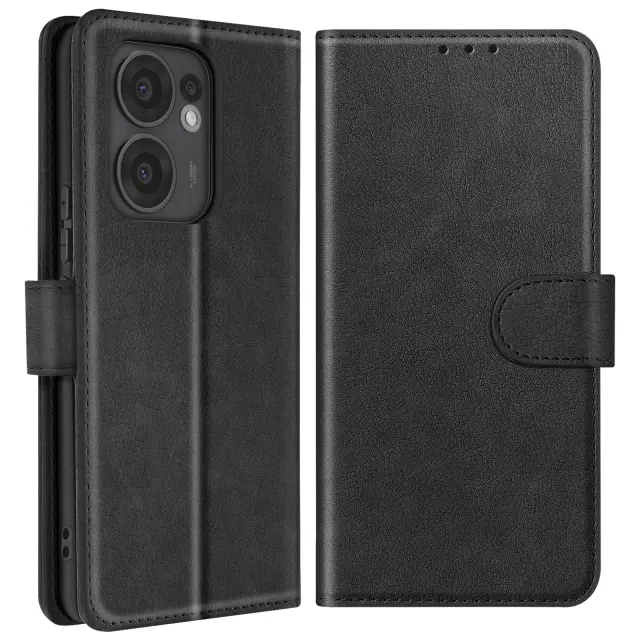 Ohišje za Oppo Reno 13 F / 13 FS Clamshell Portfelj and Video Holder, Črna
