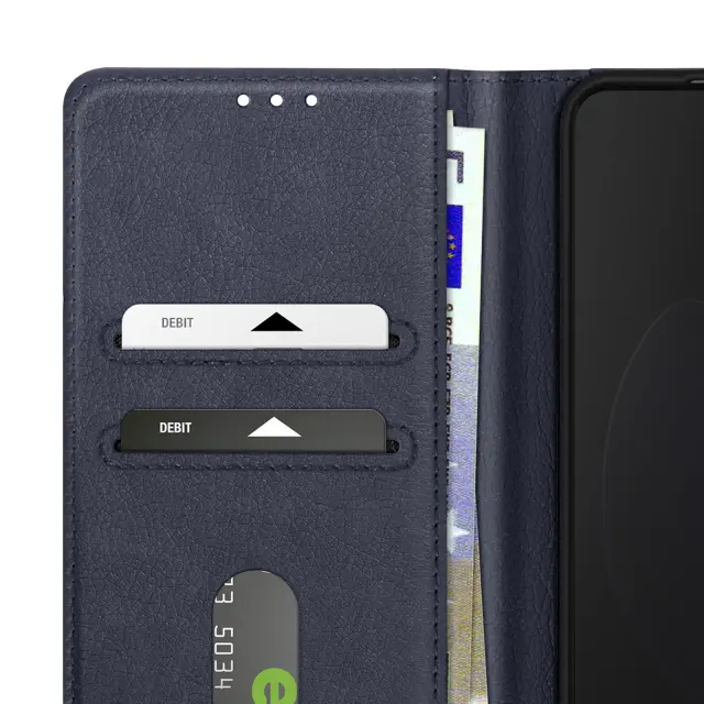 Ohišje Chesterfield za zaščito celotne [ime naprave] pred praskami in udarci. V imitaciji usnja z zrnatim učinkom, ki pametnemu telefonu daje eleganten in eleganten videz.. Magnetni zavihek drži kovček zaprt za večjo varnost. Vključuje predale za kartice in žep za bankovce.
