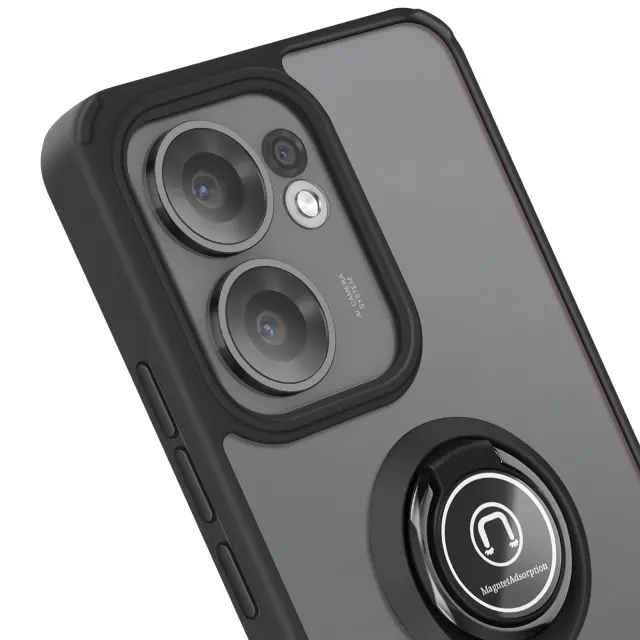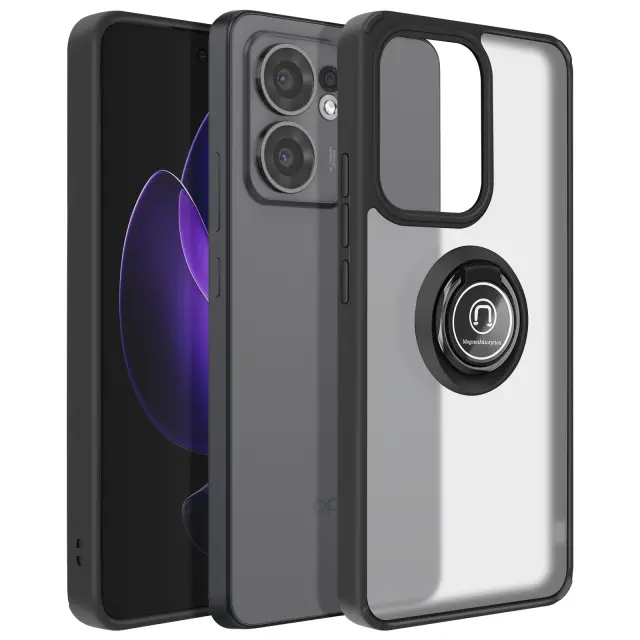 Ohišje za Oppo Reno 13 F / 13 FS Magnetni obroč prozornega hrbta, Črna
