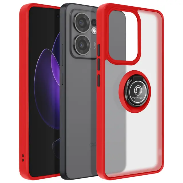 Ohišje za Oppo Reno 13 F / 13 FS Magnetni obroček prozoren nazaj, Rdeča