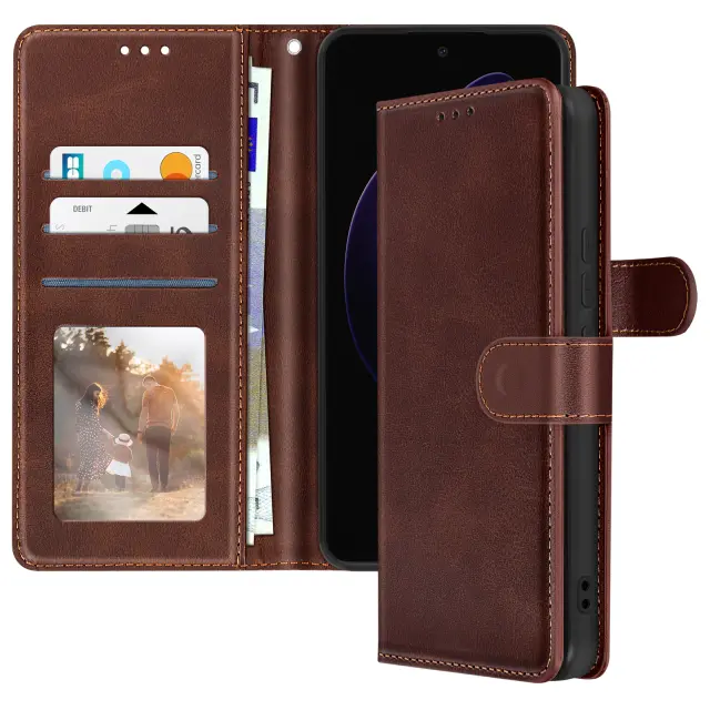 Ohišje za Oppo Reno 13 F in 13 FS Podpora za zapestni trak z zapestnico, Temno rjava