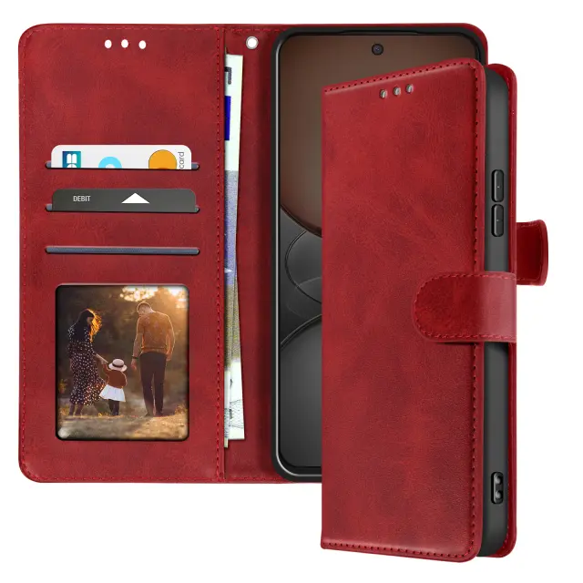 Ohišje za Realme C75 in 14x Dragonne Clapet Portfelj Support, Rdeča