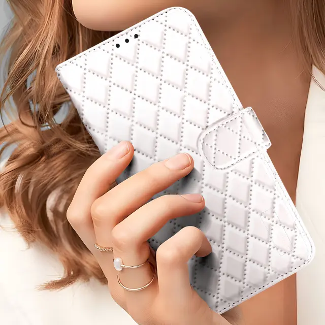 Ohišje za Redmi Note 14 4G Wallet Losange pattern, Bela