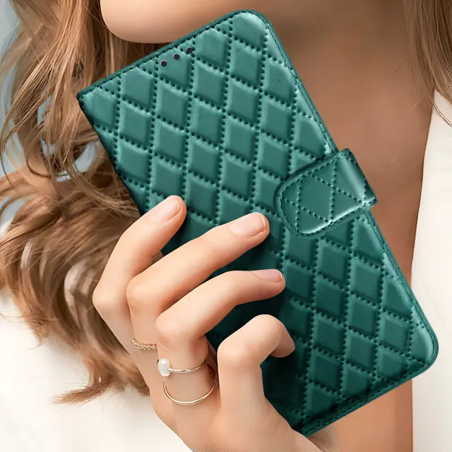 Ohišje za Redmi Note 14 4G Wallet Losange pattern, Zelena