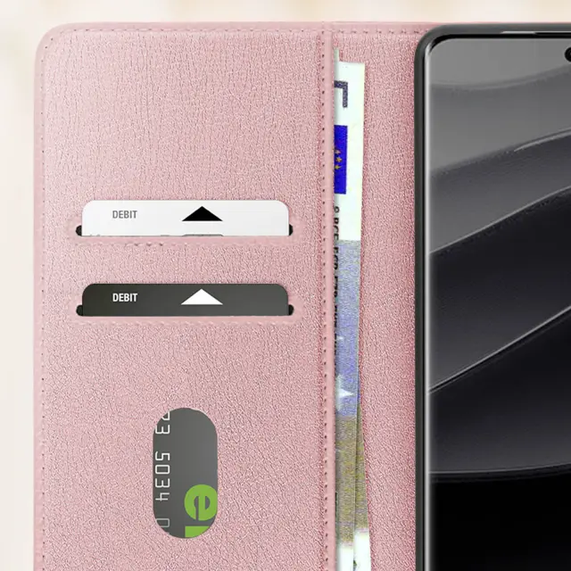 Ohišje za Redmi Note 14 Pro in 14 Pro Plus denarnica in stojalo, Šampanjec roza