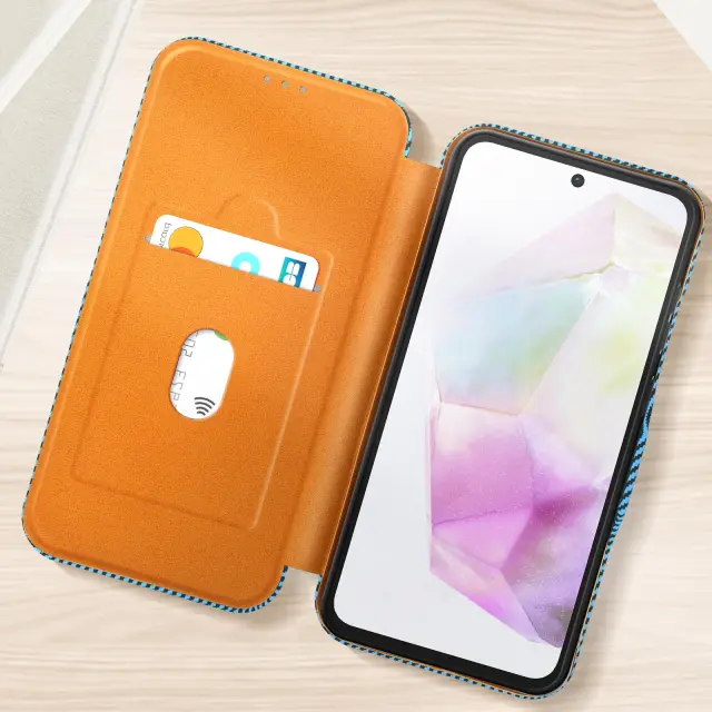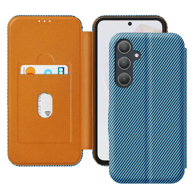 Ohišje za Samsung A35 iz ogljikovih vlaken s podporo za videoposnetke in zaščito pred RFID, Modra