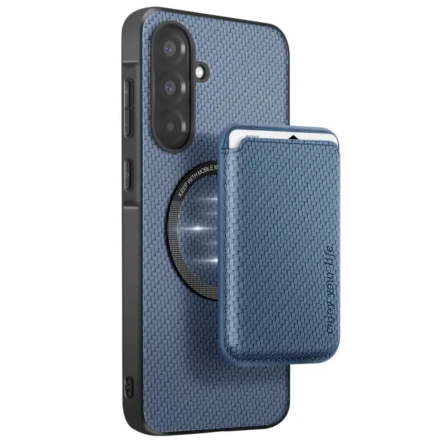Ohišje za Samsung A36 Magnetno držalo za kartice iz ogljikovih vlaken, Bledo modra