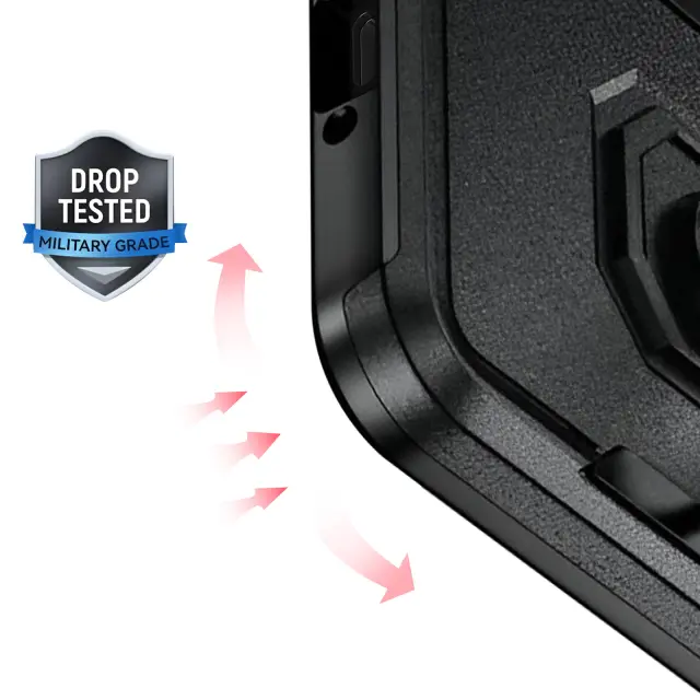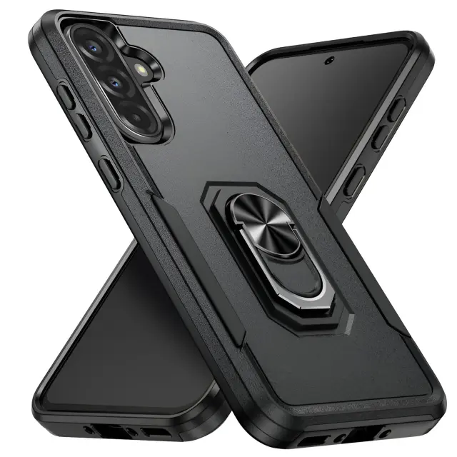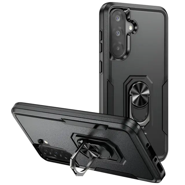 Roza-zelen udarno odporen ovitek za Samsung Galaxy A36 z integriranim podpornim obročem. Izjemno odporna vojaška zaščita iz trdega polikarbonata in mehkega silikonskega gela. 1,3 mm rob zaslona in 0,8 mm rob kamere za popolno zaščito pred praskami. 360° vrtljiv obroč za varen oprijem in stabilno podporo videu.