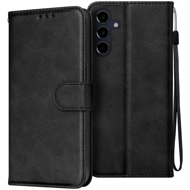 Ohišje za Samsung Galaxy A16 Hand strap Clapet Wallet Support, Črna