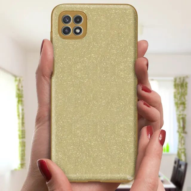 Ohišje za Samsung Galaxy A22 5G Bleščice, silikonski gel s trdo plastjo, Zlata