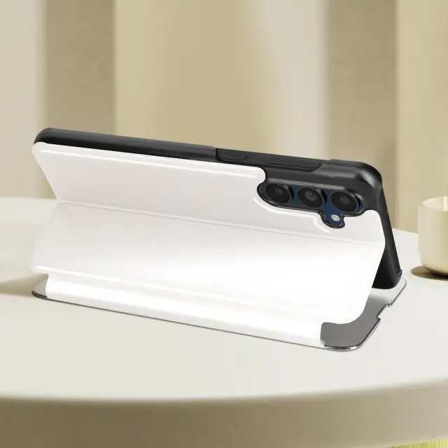 Ohišje za Samsung Galaxy M55 Clapet Mirror Clear View Support, Srebrna