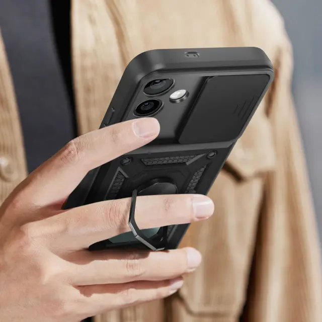 Ohišje za Samsung Galaxy S24 Plus Drsni pokrov kamere, serija Defender Slide, Črna