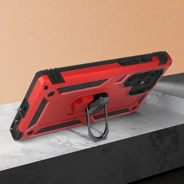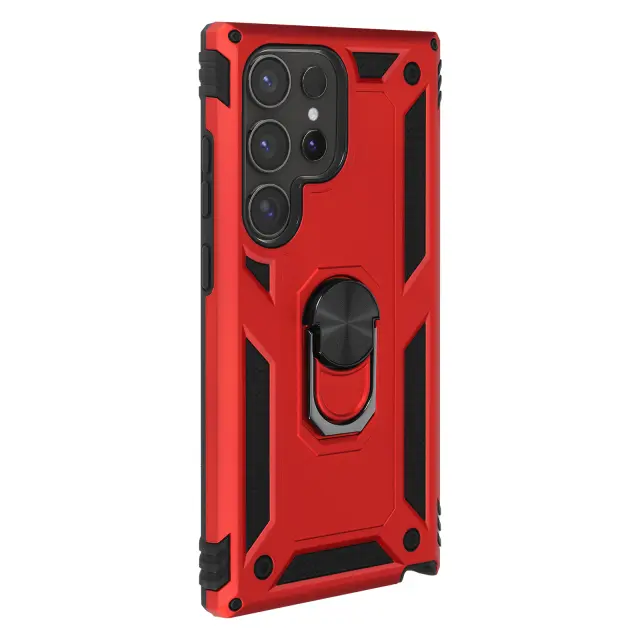 Ohišje za Samsung Galaxy S24 Ultra Odporen na udarce s podpornim obročem, Rdeča