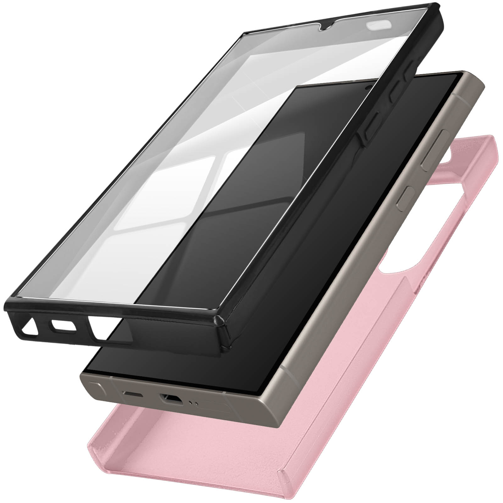 Ohišje za Samsung Galaxy S24 Ultra Zadnja toga sprednja mehka otipljiva, Šampanjec roza