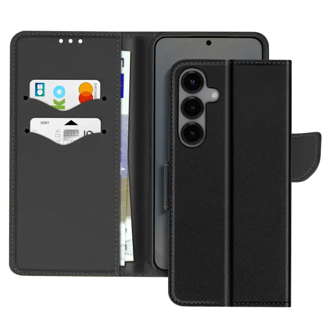 Ohišje za Samsung Galaxy S25 Plus Wallet Leather Saffiano Fancy, Črna