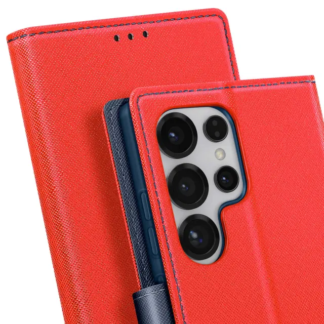 Ohišje za Samsung Galaxy S25 Ultra Wallet Leather Saffiano Fancy, Modro / Rdeče