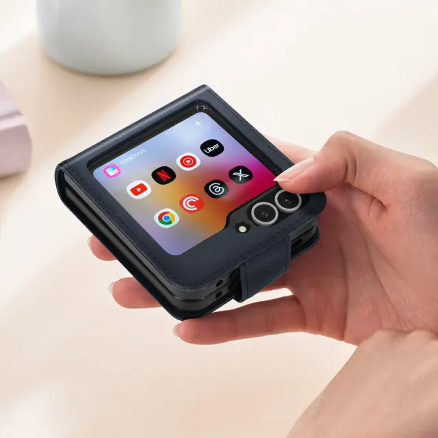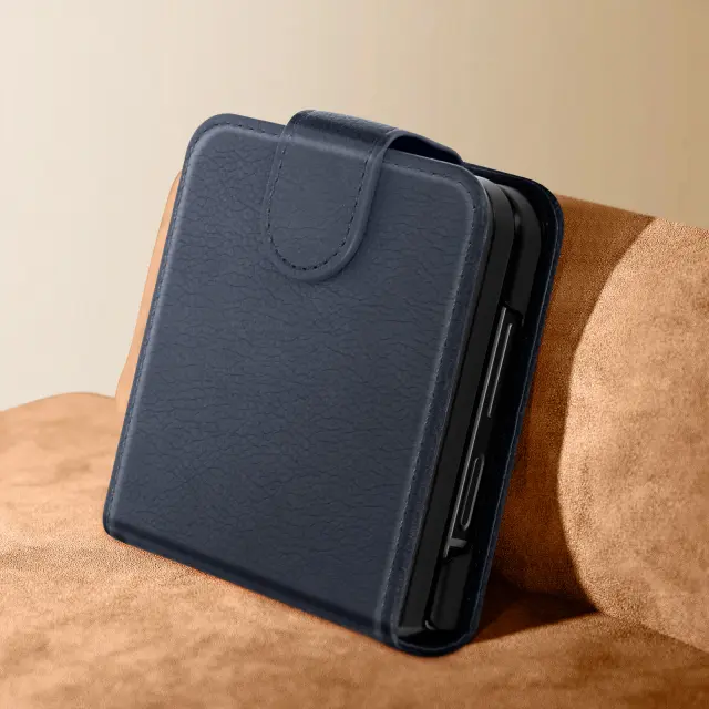 Chesterfieldova školjka za zaščito celotne naprave pred praskami in udarci. Vegansko usnje z matiranim zrnatim učinkom daje pametnemu telefonu eleganten in eleganten videz. Magnetni zavihek drži kovček zaprt za večjo varnost. Popolnoma se ujema z zasnovo Flip vašega pametnega telefona.
