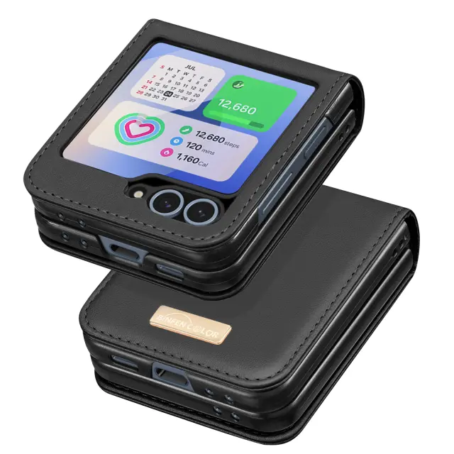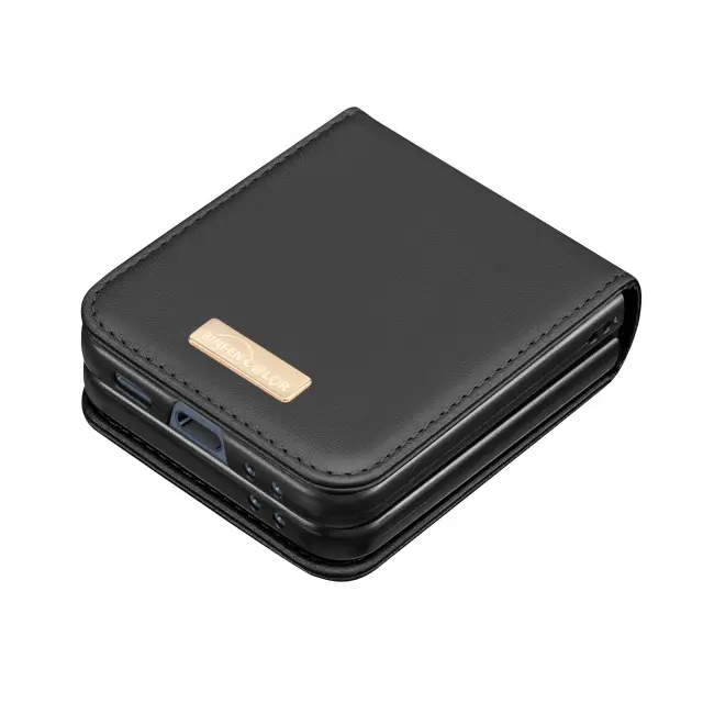 Ohišje za Samsung Galaxy Z Flip 6 Vegansko usnje, fino oblikovanje, Črna