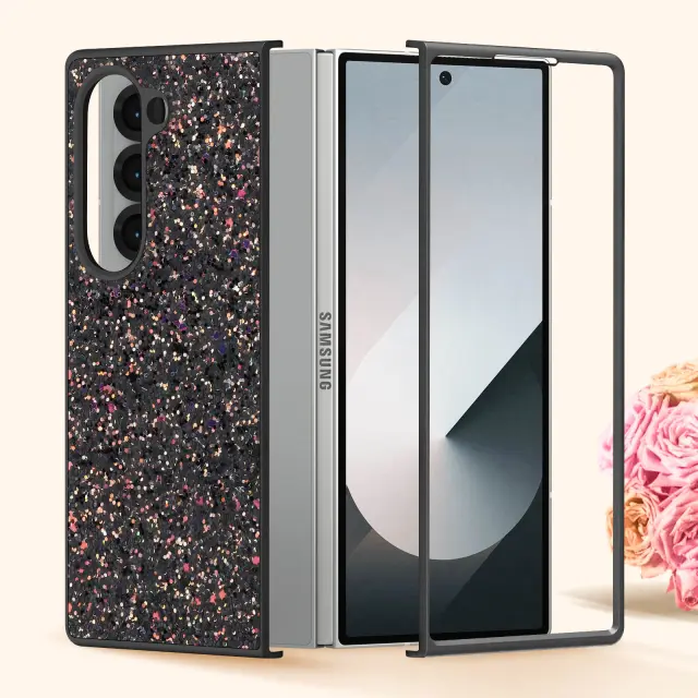 Ohišje za Samsung Galaxy Z Fold 6 Design Glitter Bi-material, Črna