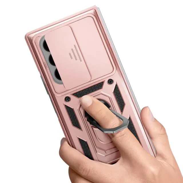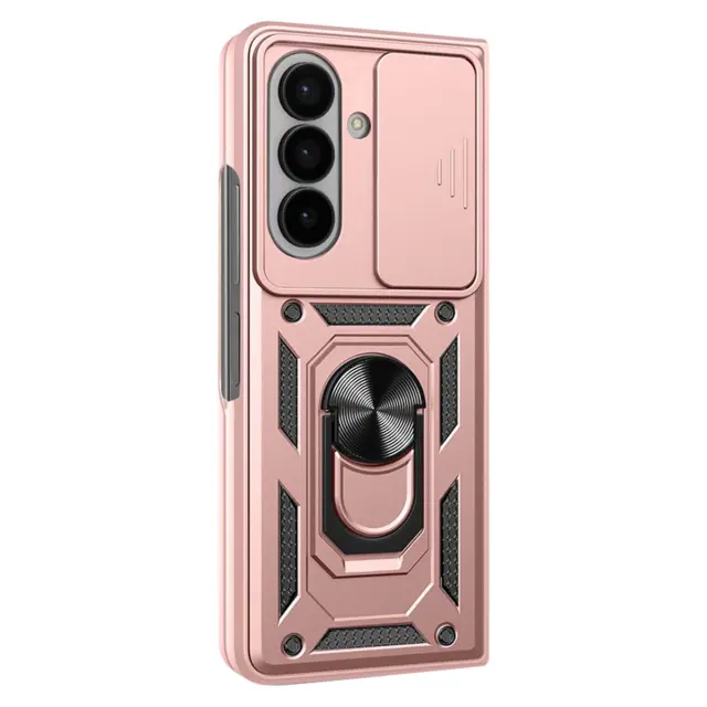 Ohišje za Samsung Galaxy Z Fold 7 z držalom za prstan in pokrovom kamere, Roza
