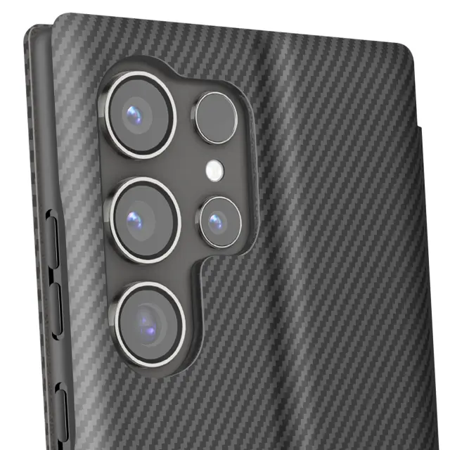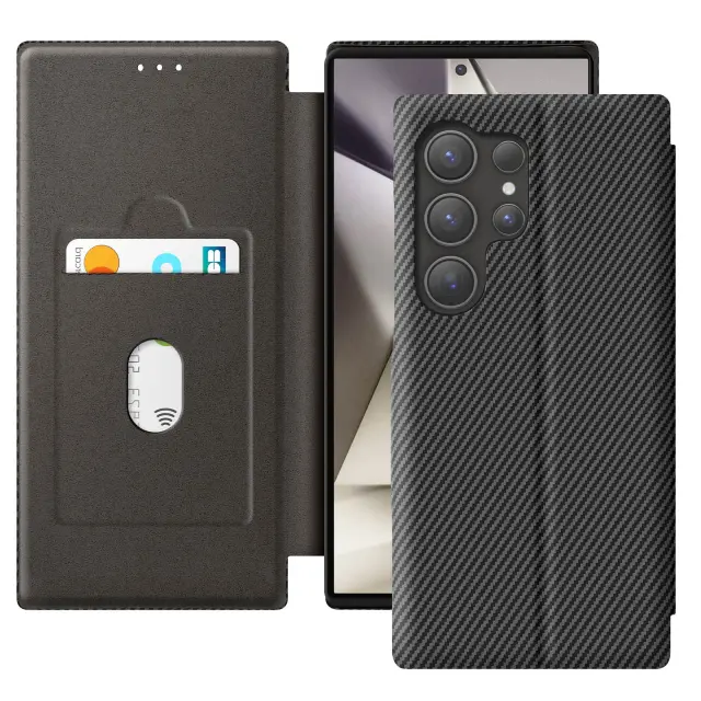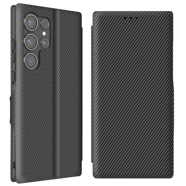 Ohišje za Samsung S24 Ultra iz ogljikovih vlaken s podporo za videoposnetek in zaščito pred RFID, Črna