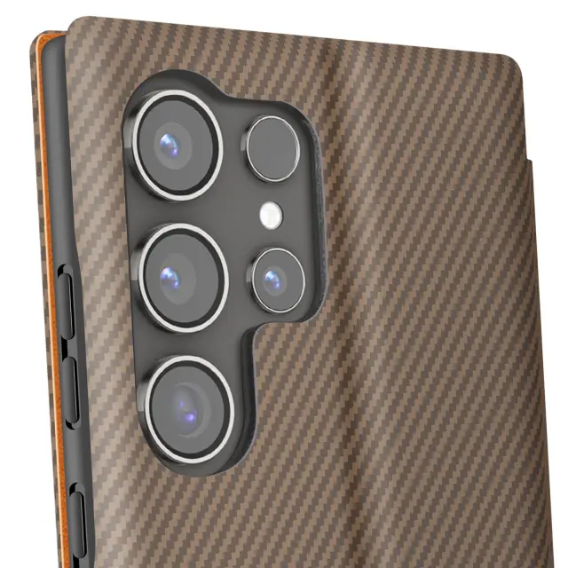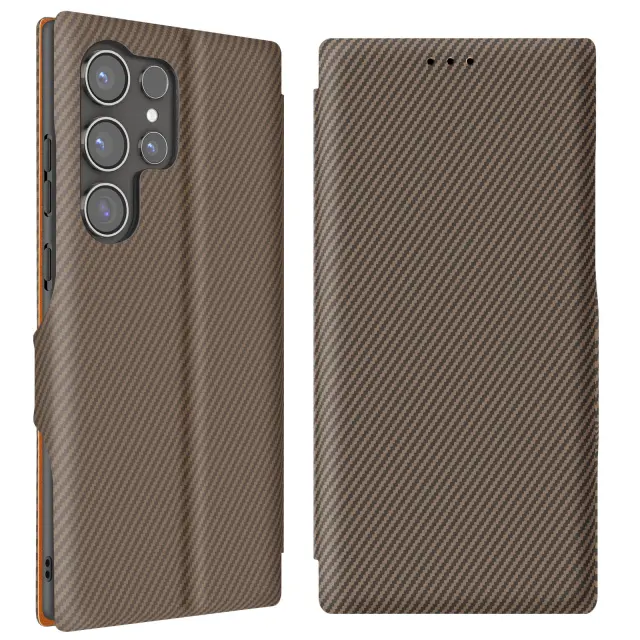 Ohišje za Samsung S24 Ultra iz ogljikovih vlaken s podporo videoposnetkom in zaščito proti RFID, Rjava