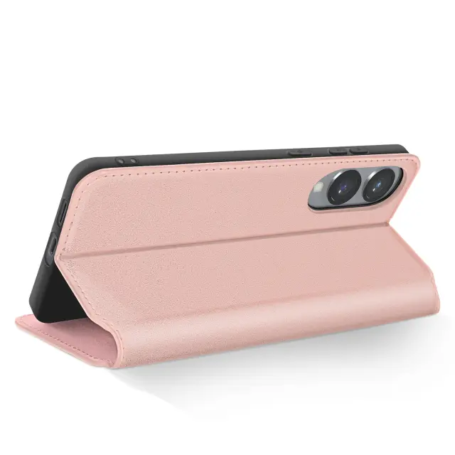 Ohišje za Samsung S25 Edge Clamshell Card Holder and Video Holder, Šampanjec roza