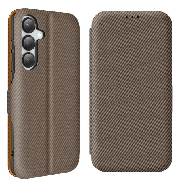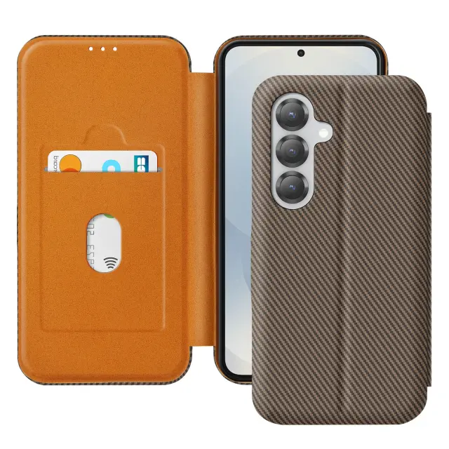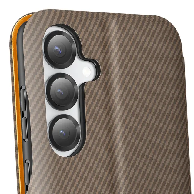 Ohišje za Samsung S25 Plus iz ogljikovih vlaken s podporo za video in zaščito pred RFID, Rjava