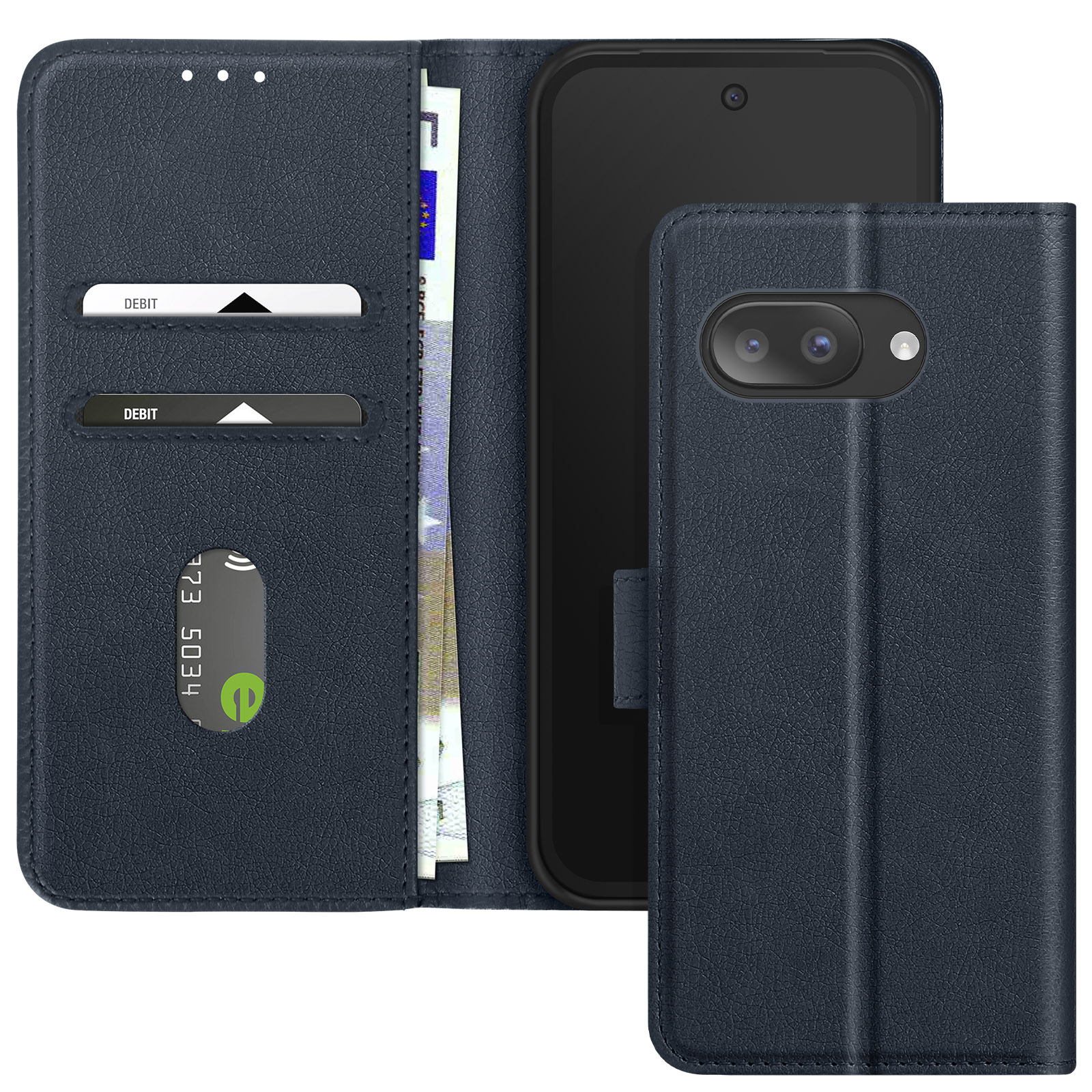 Ohišje za telefon Google Pixel 9a z denarnico in video držalom, Modra noč