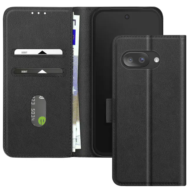 Ohišje za telefon Google Pixel 9a z denarnico in držalom za videoposnetke, Črna