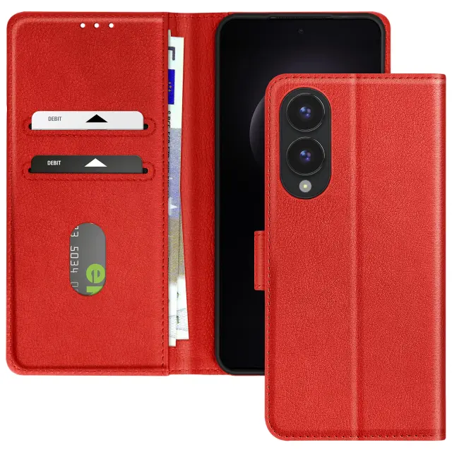 Ohišje za telefon Samsung Galaxy S25 Edge z denarnico in videomaterialom, Rdeča