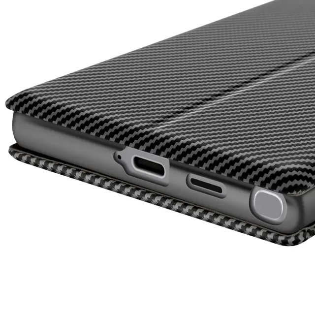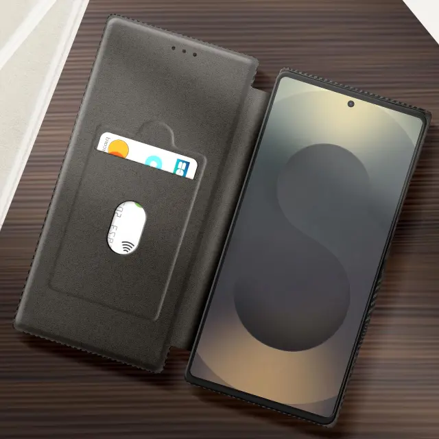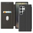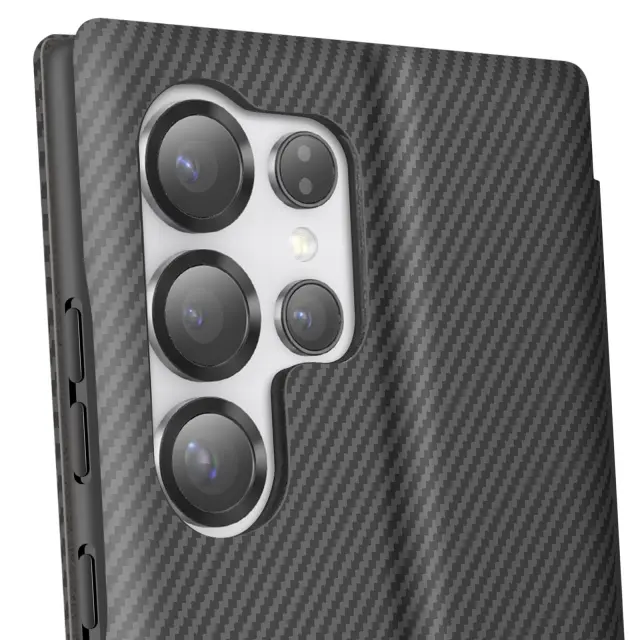 Ohišje za telefon Samsung S25 Ultra iz ogljikovih vlaken s podporo za videoposnetke in zaščito pred RFID, Črna